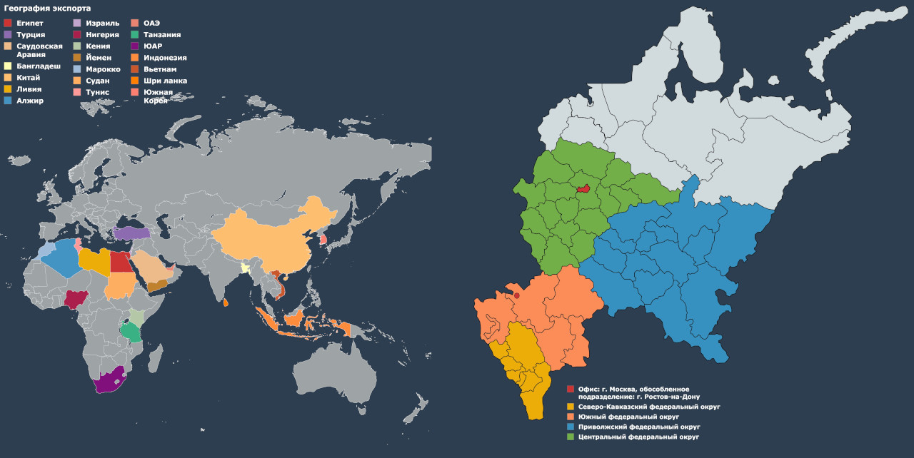 Основными экспортными позициями для нашей компании традиционно являются пшеница, ячмень и кукуруза, в то же время мы активно развиваем экспорт нишевых культур.
